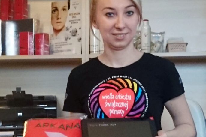 Oto Pani Agata Łaktionow z Gabinetu KOSMO-DERM z Sochaczewa wraz z nowym tabletem otrzymanym w Programie lojalnościowym Arkana.