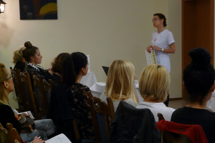 Blok kosmetologiczny prowadziła mgr kosmetologii Małgorzata Pindur, asysta Adriana Zasada konsultant COK ARKANA.